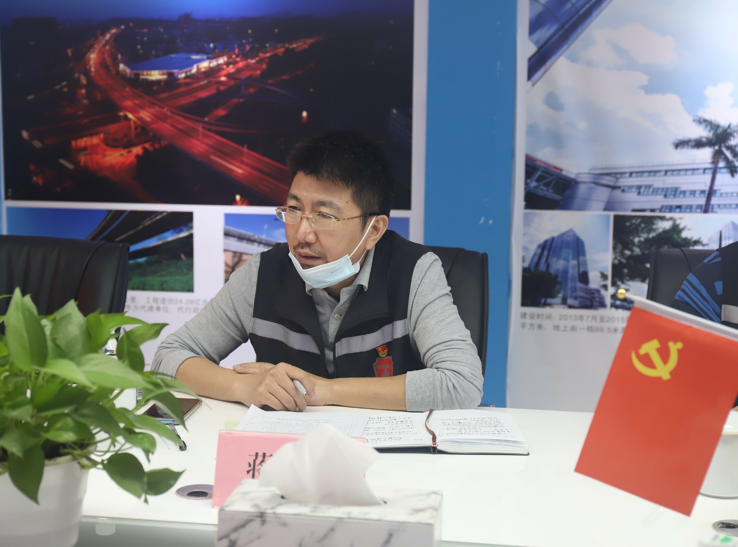 蒋桂山副站长介绍了深圳市住建系统开展“党建廉建共建、质量安全共管”工作取得的优异成果,要求各项目要在公司党组织的领导下,“强组织,见实效,扣主题”,充分发挥临时党支部的战斗堡垒作用和党员的先锋模范作用,以“提升工程质量,促进施工安全”为目标,联合推进建设工程现场党的政治建设、思想建设、组织建设、作风建设、纪律建设,务实解决工程质量、安全监督等工作过程中遇到的实际问题。并强调临时党支部要为项目质量安全管理出谋划策,成为支撑项目质量安全向上平稳发展的顶梁柱,促进工程质量安全管理水平和建筑工程品质总体水平的双提升。