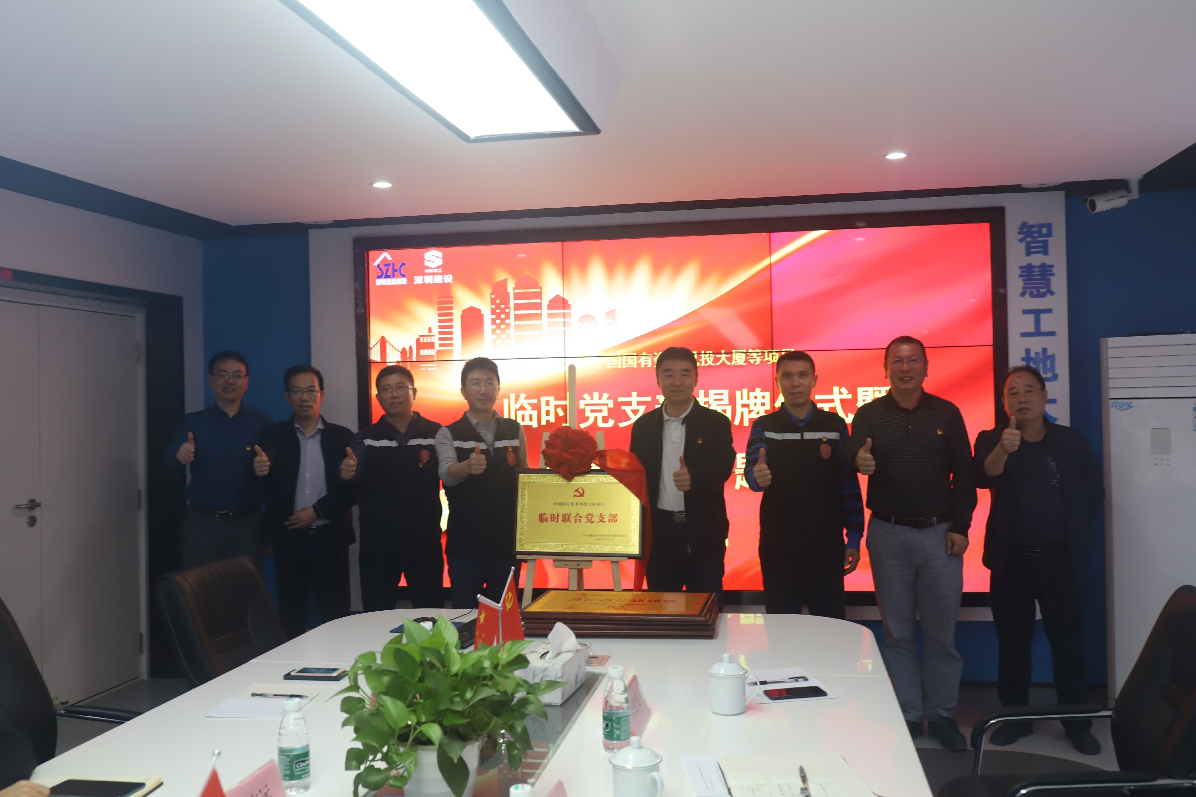 蒋桂山副站长和石宏伟副书记共同为中国国有资本风投大厦项目临时联合党支部揭牌并与出席领导合影留念。