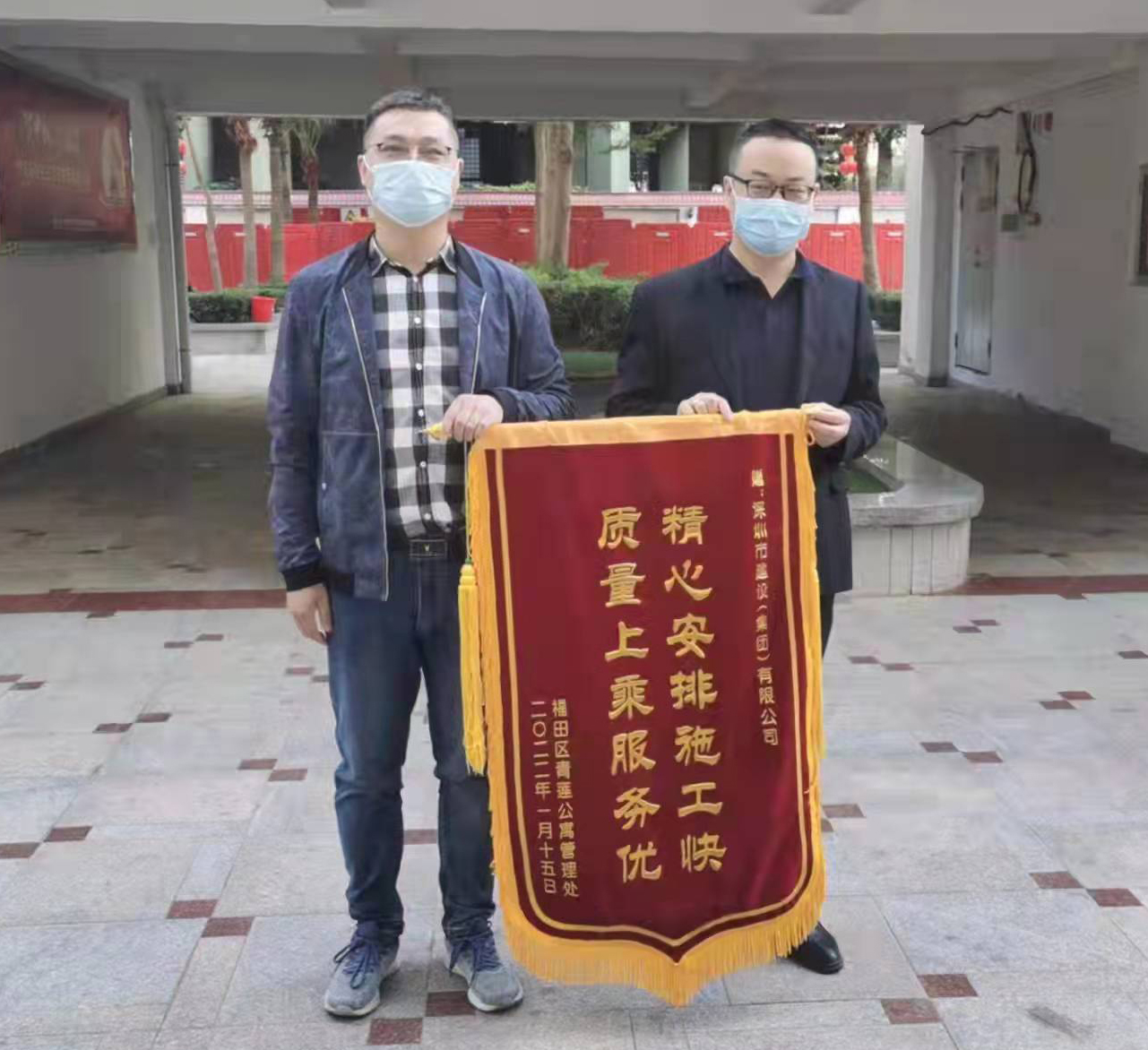 2022年1月21日,福田区青莲公寓管理处有关同志向福田区第七期优质饮用水入户工程(第五批)施工总承包项目部赠送“精心安排施工快 质量上乘服务优”的锦旗,项目经理毛浣林代表项目部接受锦旗。此外,本项目施工范围内的部分小区向其他参建方赠送锦旗。 ...